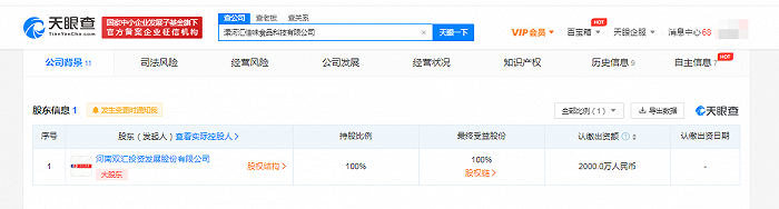 双汇在漯河成立食品科技公司,注册资本2000万