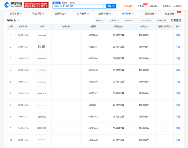 鞭牛士 11月29日消息,天眼查显示,近日,特斯拉(上海)有限公司申请注册多个新商标,商标包括“特斯拉超级充电桩”“超级充电站”“TESLA SUPERCHARGER”等商标,国际分类均为科学仪器,目前商标状态均为申请中。