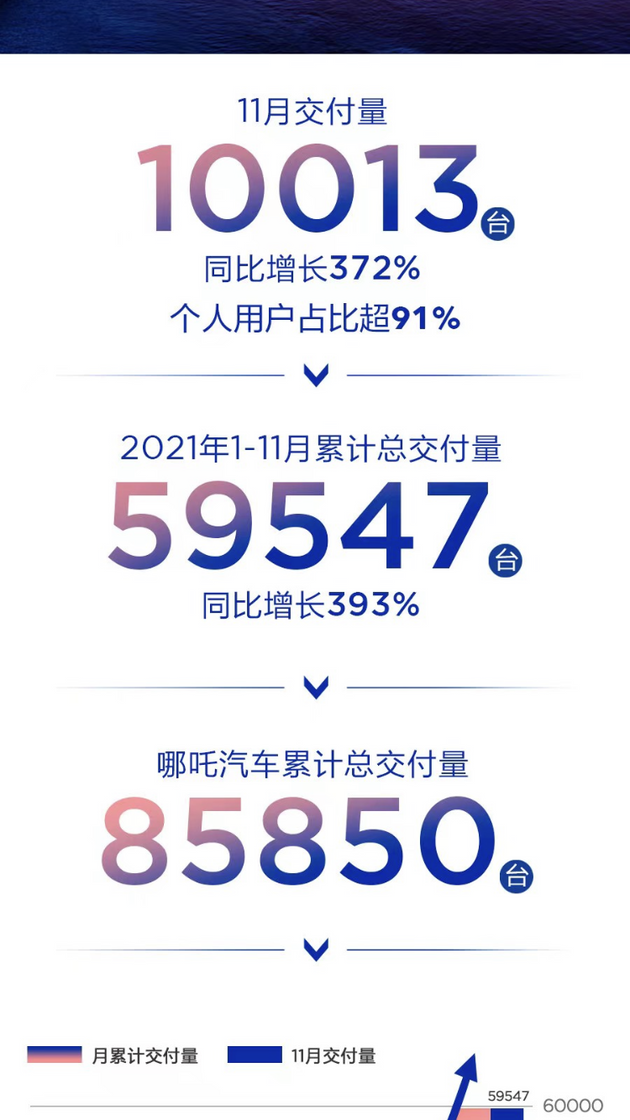 哪吒汽车:11月交付10013辆车,同比增长372%