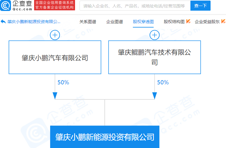 企查查信息显示,该公司成立于2020年,法定代表人为夏珩,经营范围包含:企业自有资金投资;能源管理服务;为电动汽车提供电池充电服务;研发电动汽车等,由肇庆小鹏汽车有限公司、肇庆鲲鹏汽车技术有限公司共同持股。