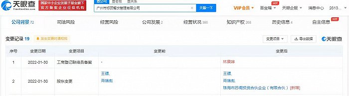 鞭牛士 2月8日消息,天眼查App显示,近日,苏阁鲜茶关联公司广州市标顶餐饮管理有限公司发生工商变更,新增股东珠海市苏阁投资合伙企业(有限合伙)。股权穿透图显示,喜茶创始人聂云宸为上述合伙企业执行事务合伙人。