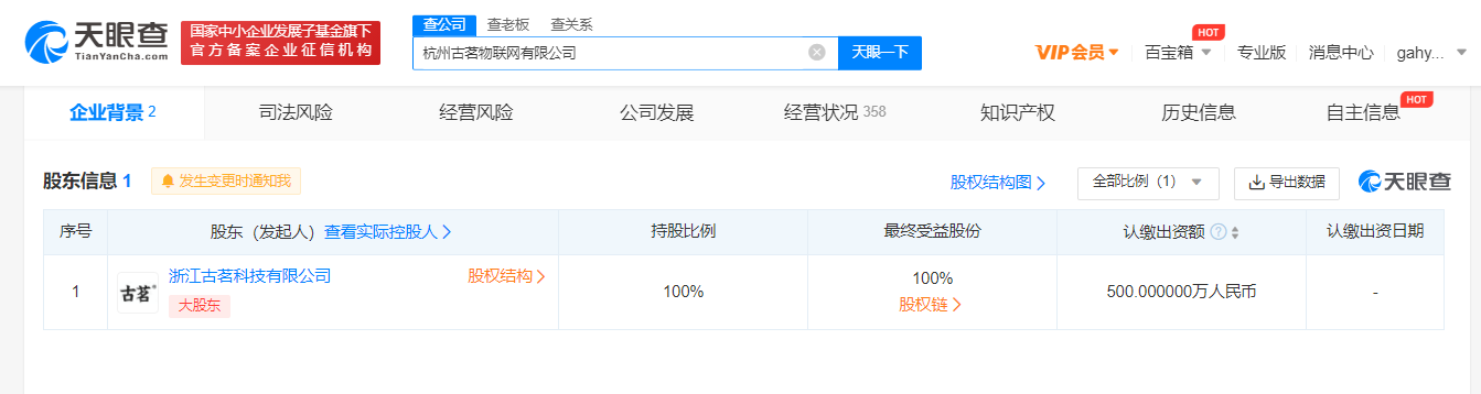 股东信息显示,该公司由浙江古茗科技有限公司全资控股。