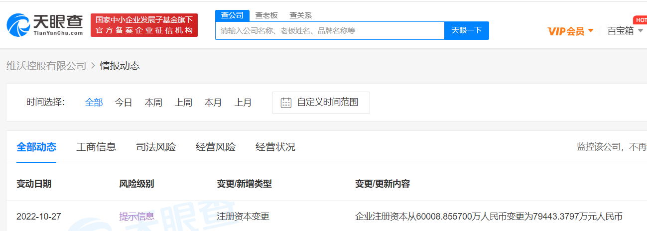 鞭牛士 10月27日消息,天眼查App显示,近日,维沃控股有限公司发生工商变更,注册资本由约6亿人民币增至约7.9亿人民币。