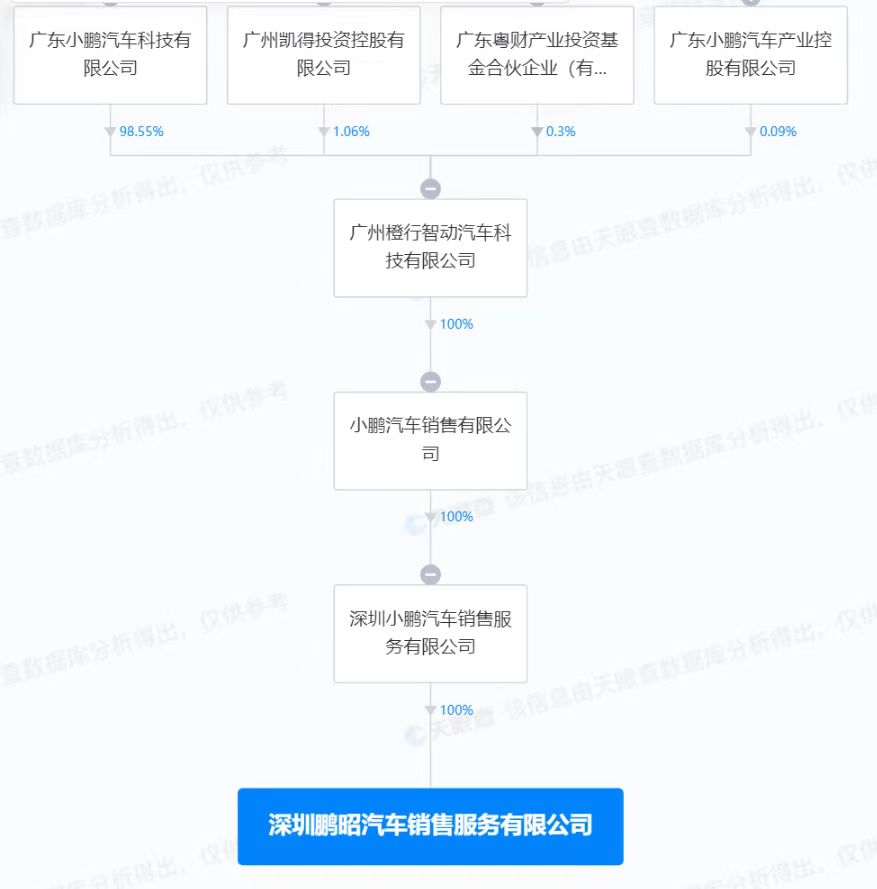 股权全景穿透信息显示,该公司由深圳小鹏汽车销售服务有限公司全资持股。