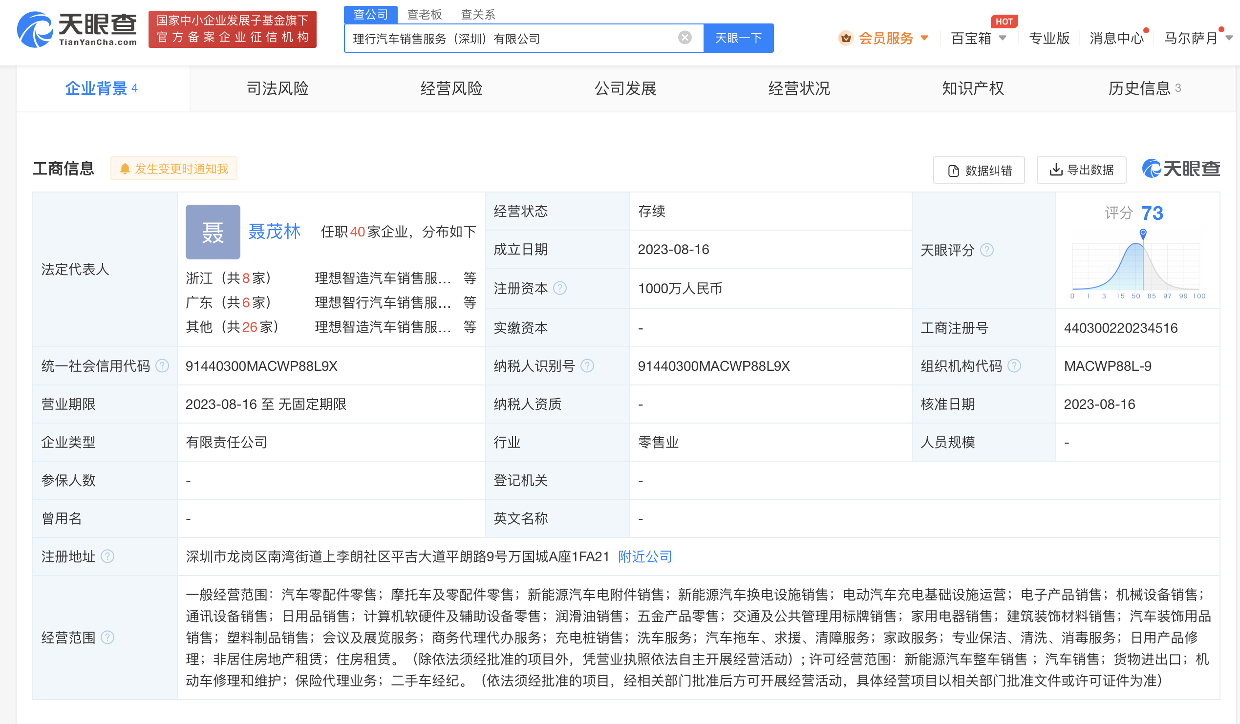 理想汽车在深圳成立销售公司,注册资本1000万