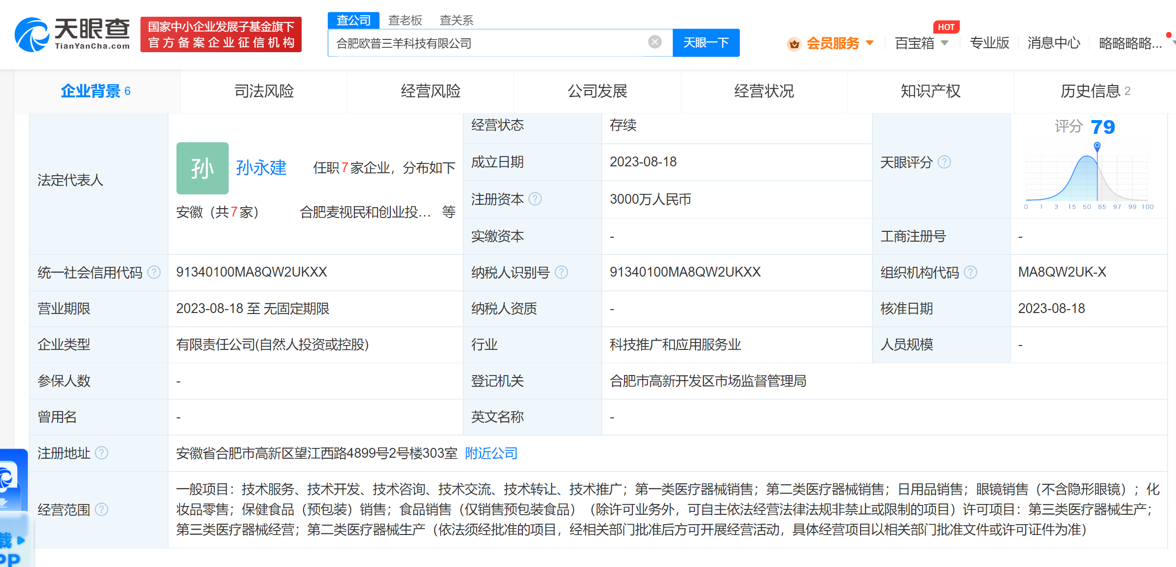 天眼查App显示,近日,合肥欧普三羊科技有限公司成立,法定代表人为孙永建,注册资本3000万人民币,经营范围含第一类、第二类医疗器械销售,日用品销售,化妆品零售,第三类医疗器械生产、经营等。
