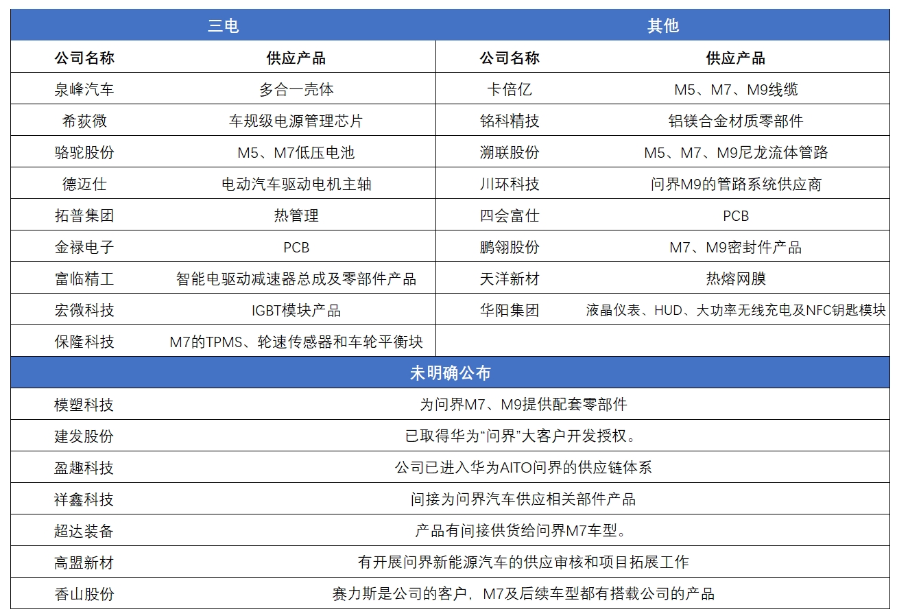 我们先来看看有哪些企业公开表示为问界汽车供货。