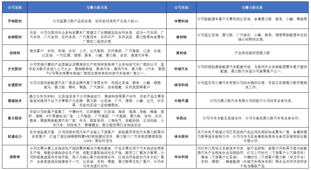 这些企业也表示与赛力斯有合作
