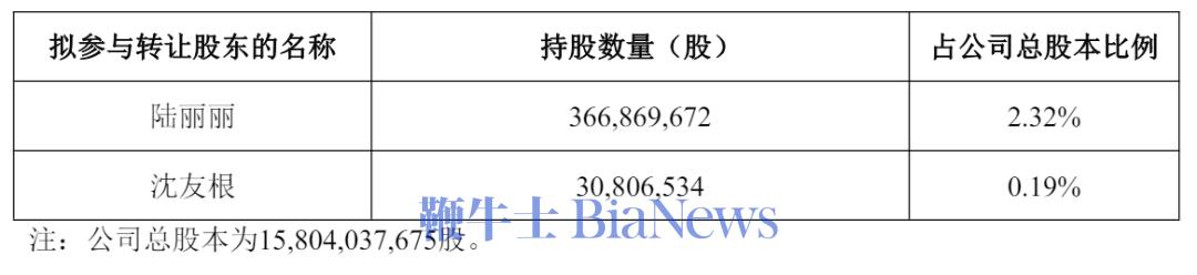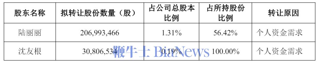 此次转让前,陆丽丽持股占比为2.32%,沈友根持股比例为0.19%;此次一共转让1.5%的股权。