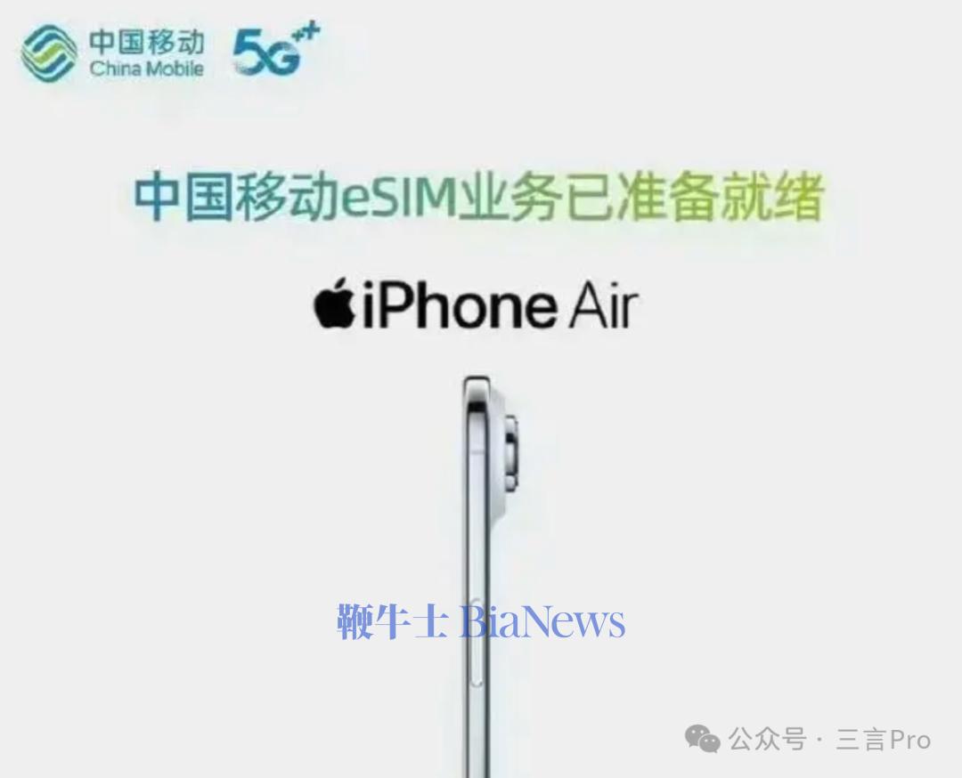 据悉,iPhone Air将是国内首款纯eSIM机型,厚5.6mm,重165g,配备6.5英寸120Hz OLED屏、A19 Pro处理器、4800万后置+1800万前摄及钛金属边框。(转载自三言Pro)