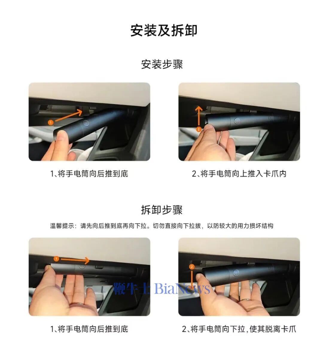 此外,在小米商城App以及小米汽车App中,官方有明确关于手电筒如何安装以及拆卸的教程。