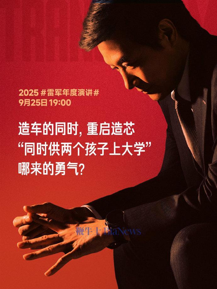 单以今年雷军年度演讲的一张海报为例。今年雷军年度演讲的主题是改变,小米对外发出的一张海报宣传语是:“造车的同时,重启造芯,同时供两个孩子上大学,哪来的勇气?”