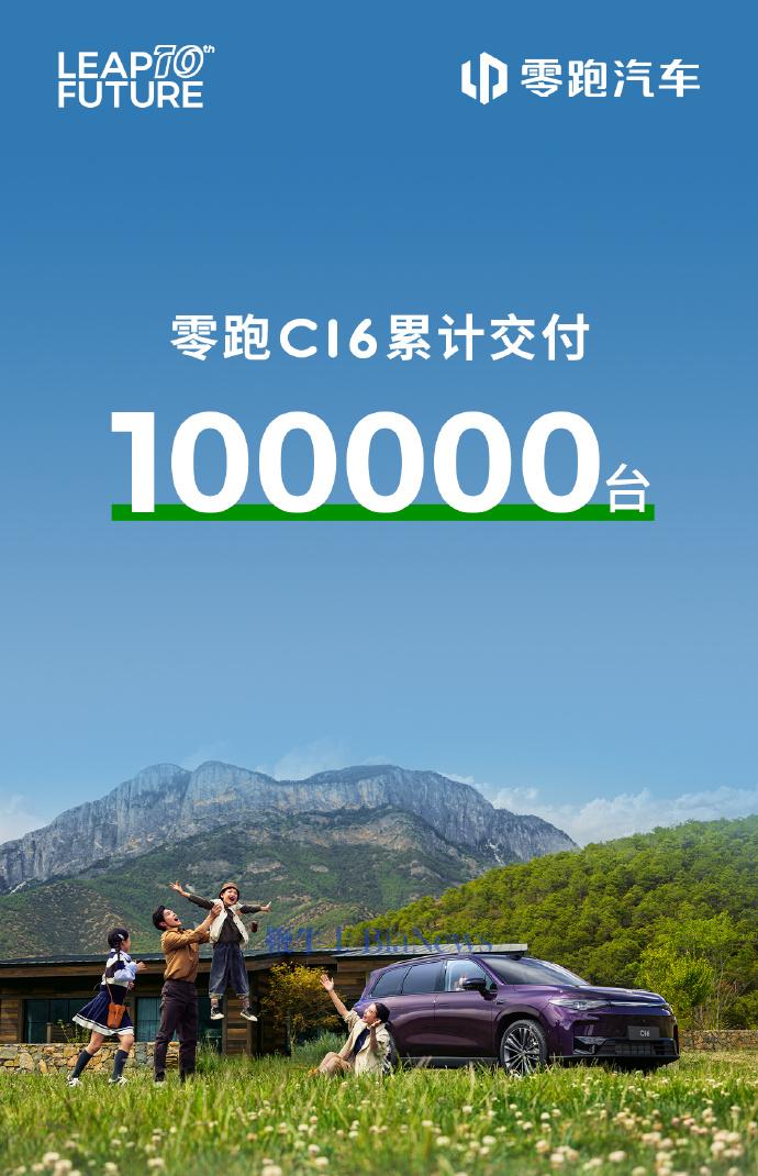 今日,零跑汽车宣布,零跑C16累计交付已达100,000台。