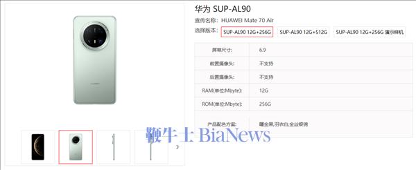 其他方面,根据此前曝光的消息,全新的华为Mate70 Air将搭载麒麟9020芯片,最高可选16GB运行内存版本,预计将保留实体SIM卡插槽,同时支持eSIM功能。