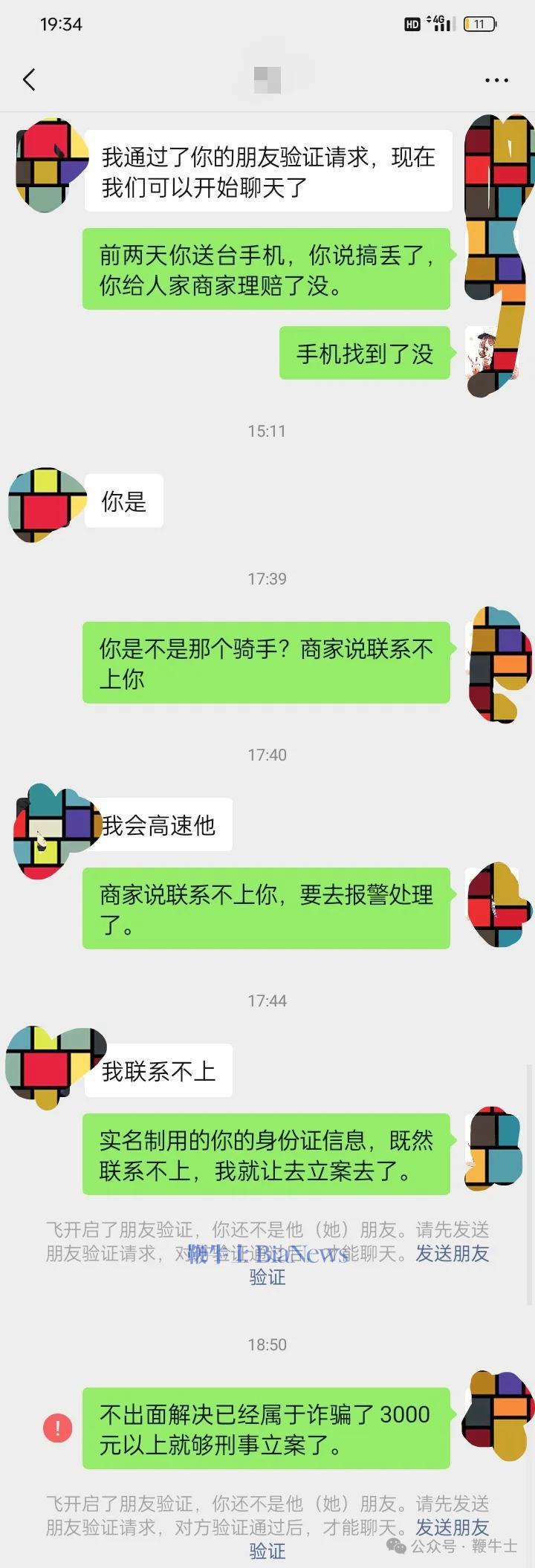 网友称,自己还曾尝试过联系该骑手,但从31号开始骑手电话就关机了,换了号码也无法联系,2号时添加该骑手微信,可没聊几句就把自己拉黑了。