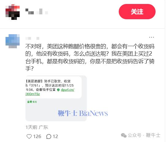 对此,评论区有人提醒网友,美团送货都会有一个收货码,而跑腿骑手是不知道该收货码的,也就无法在订单上点击“确认送达”。