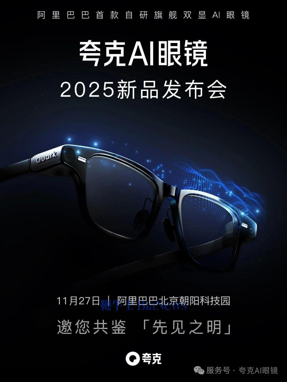 今日,夸克官方宣布,其AI眼镜2025新品发布会正式定档11月27日。