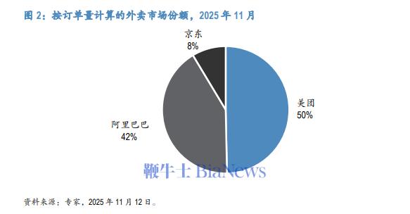 市场格局方面,美团虽以50%的份额(约7100万日单)保持领先,但报告称其地位“有些降温”。