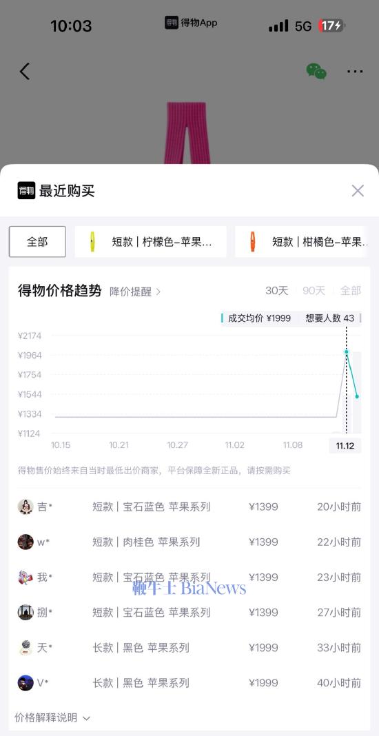 据得物App数据显示,iPhone Pocket长款市场价上涨到2399元,短款价格上涨到1699元,最高溢价500元。在得物社区,苹果官宣后iPhone pocket 话题迅速登上得物社区热榜。(转载自新浪科技)