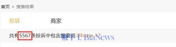 「TMT星球」又以“iPhone 17”为关键词在黑猫投诉平台进行检索,结果显示,相关投诉量高达5567条,主要集中在产品有质量瑕疵、货不对板、超期不发货、售后服务差等方面。
