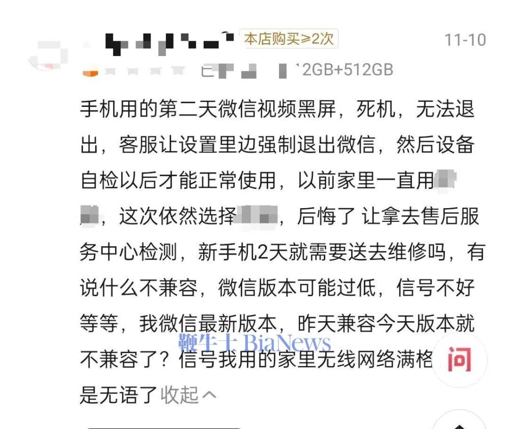 有用户购买了某国产高端旗舰机后,使用的第二天就出现了黑屏、死机、无法退出等状况,去售后检测却并未检测出问题出现的根源,而“新手机2天就需要送去维修”这种情况极大影响了用户体验。