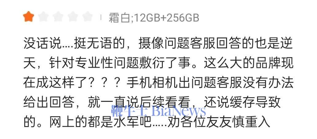 还有用户表示,其购买的某国产高端旗舰机后相机出现了问题,在询问客服时,客服也没办法给出回答,“就一直说后续看看,还说缓存导致的”。