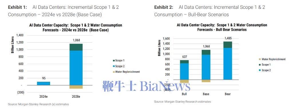 数据中心是极其依赖物理资源的实体,摩根士丹利的模型显示,AI数据中心的“干渴”程度正在以惊人的速度增长。