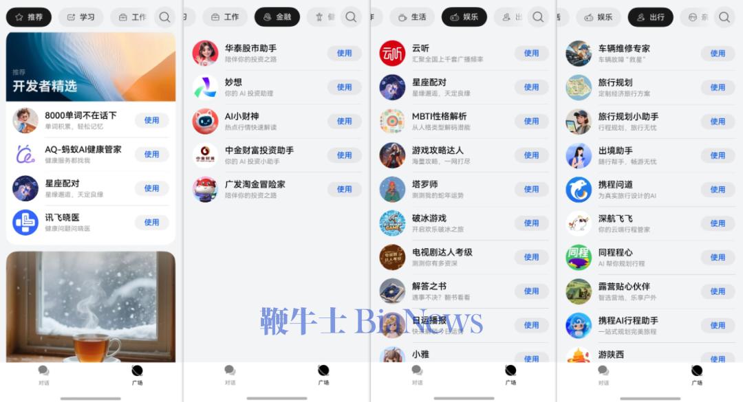 这些都是三方APP提供的智能体,它们跟小艺的关系更像是同事。