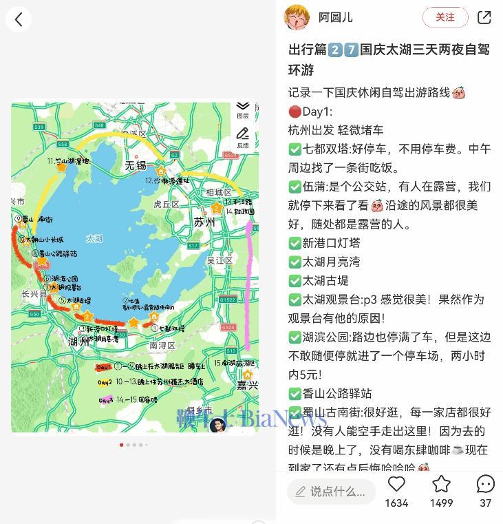 在小红书上找到一个自驾游攻略后,唤起小艺打开分屏导航,左边显示小红书的帖子,右边是地图软件。