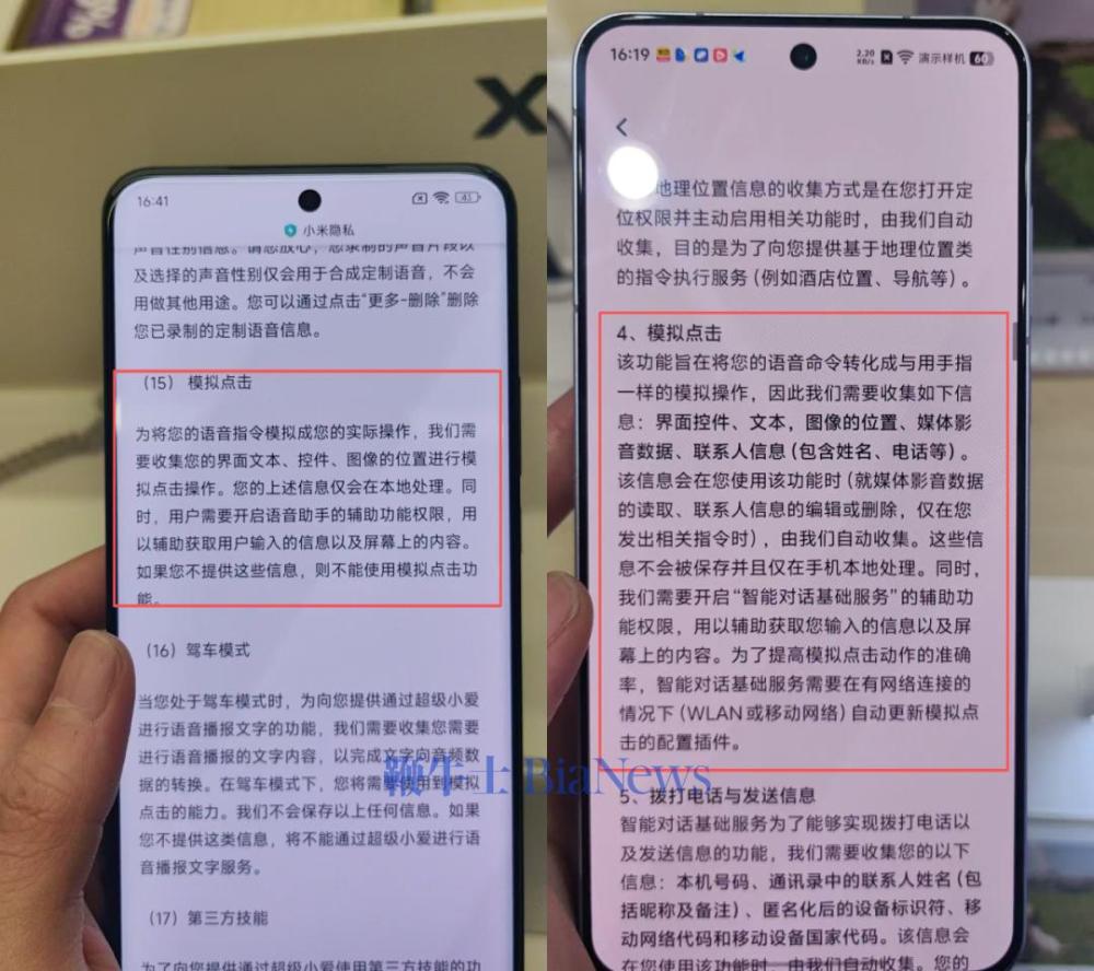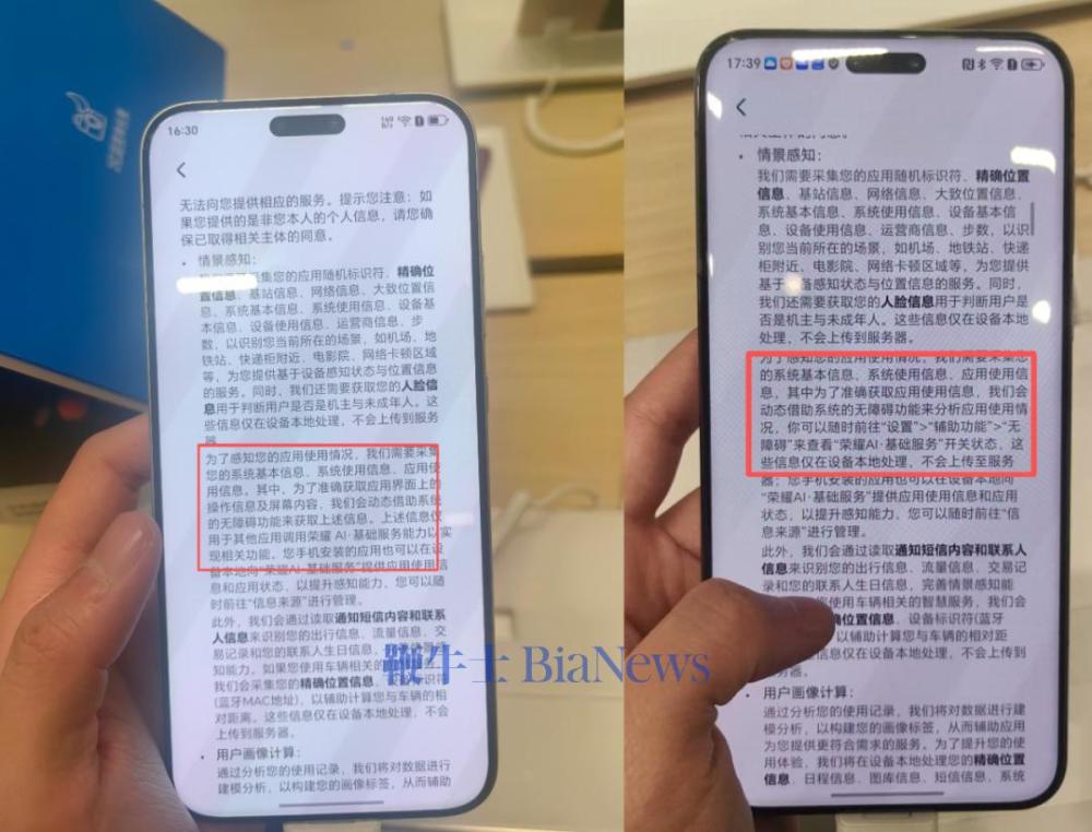 不同模式同一个目的 《隔屏有手!AI手机自动点咖啡背后,是偷偷启动的无障碍功能》报道半年后,《IT时报》记者再次对各大手机厂商新机进行测试发现,AI助手的智能化程度得到“史诗级增强”,已经不再局限于点咖啡。 图源:即梦AI “帮我在淘宝上选一条便宜的牛仔裤。”下命令给荣耀新机Magic 8和华为新机Mate 80,不仅可以通过AI助手打开淘宝,搜索“牛仔裤”品类,还能自动比价,按照指令筛选出“便宜”的商品展现在眼前。如果能给出更详细的尺码和颜色,AI助手可以“一步到位”,用户只需付款即可。 AI助手越来越智能的背后离不开“无障碍”权限的调用。在各类手机AI助手的《隐私政策》中,记者依旧发现了手机厂商在调用无障碍功能、模拟点击、读屏、辅助功能等辅助AI决策的说明。 例如,荣耀新机Magic 8的《关于荣耀AI基础服务与隐私的声明》中,关于“情景感知”条例明确写道:“为准确获取应用界面上的操作信息及屏幕内容,我们会动态借助系统的无障碍功能来获取上述信息。”相比上一代Magic 7“为了准确获取应用使用信息,我们会动态借助系统的无障碍功能来分析应用使用情况”的表述,新机条例中着重提到“获取应用界面上的操作信息及屏幕内容”。 Magic 8和Magic 7的隐私政策 小米和vivo则将模拟点击作为单独条例列出来,表示“该功能旨在将您的语音命令转化成与用手指一样的模拟操作,我们需要收集如下信息:界面控件、文本、图像的位置、媒体影音数据、联系人信息等。同时,需要开启辅助功能权限,用以辅助获取您输入的信息以及屏幕上的内容”。 小米和vivo的隐私政策 安全团队网络尖刀创始人曲子龙曾向《IT时报》记者解释,各种App之间为了防止互相读取数据,一般会设置隔离系统,只有接入对应的API(应用程序编程接口)才能调用。无障碍功能属于系统级的API,它可以读取用户与设备的交互信息,能够代表应用与用户进行交互。比如,当鼠标指针悬停于屏幕上的关键区域时,不需要实际触控屏幕,便可以给予用户反馈,“它就像一张‘万能卡’,能刷开各个App之间的‘门禁’”。 然而,在豆包手机面前,“无障碍权限”的调用也变得“低人一等”。据技术专家分析,豆包手机或是动用了系统底层权限INJECT_EVENTS(注入事件),而该权限是Android(安卓)系统里的一个系统级危险权限。 简单理解,INJECT_EVENTS允许应用向系统“伪造”用户操作事件(按键、触摸、轨迹球等),并且可以发送到任何窗口或任意App。在Android权限设计中,一般仅有手机厂商预装的系统应用或获取与手机系统同套签名key(密钥)的应用才有此权限,极少向外部开放,以防恶意程序批量操控设备。 曲子龙具体解释道,手机如同沙盒,App无法控制其他App,除非获取更底层的控制能力,豆包AI手机这次的主要突破就是“后台唤醒”能力。 此次豆包手机助手选择的合作方是中兴,是市面上少有的暂时还没有做自有AI助手的手机厂商,而华为、荣耀、小米、vivo、OPPO都有自己的AI助手,豆包手机助手相当于为没有AI助手的智能手机赋能。 有了更底层的系统权限,豆包手机助手不仅能够在系统自带的相机、相册、记事本、日历、行程等应用上面互动,更摆脱了对“无障碍工具”的依赖,可以同时打开多个App,体验更丝滑。 大厂、银行集体说“不” 游戏类App影响不大 作为大模型企业,智谱也让AI学会了“使用手机”,其发布的大模型AutoGLM能力与豆包手机不相上下,但“聪明”的做法是将其开源,且优先部署云端手机,把操控AI的“钥匙”交到整个行业手中。 反观豆包手机,其“去App化”的操作模式,让用户无需打开应用就能完成任务,直接动摇了超级App作为流量入口和商业变现基础的地位。如今,微信、支付宝、淘宝、银行等App都以安全风控为由,强制出现弹窗警告或登录限制来限制豆包手机的使用。 据《腾讯微信软件许可及服务协议》第7.3条明确规定:禁止通过非腾讯开发、授权的第三方软件、插件、外挂、系统,登录或使用本软件及服务,或者进行自动化操作。 腾讯对此回应:“没有什么特别动作,可能是豆包手机助手触发了微信的风控机制,其模拟点击操作被识别为‘自动化脚本’。”支付宝也与微信类似,将豆包手机助手的行为判定为“外挂脚本”。 从技术层面来看,风控系统并不会直接“认出”豆包,而是通过分析设备和用户行为的异常特征,综合判断当前操作并非真人。 在《2025反爬与反作弊技术全解:设备指纹到AI风控的攻防实战》一文中提到,设备指纹是识别终端设备的核心手段,风控系统会采集设备的硬件、软件、网络等数百项参数,生成一个独特的“设备指纹”,检测设备是否为模拟器;行为时序分析则会结合鼠标轨迹、触控压力、滚动速度等行为数据,构建动态画像,区分真人操作与自动化脚本。而豆包手机使用的INJECT_EVENTS本就属于高危系统权限,因此会被识别为风险标签。 生态层面,超级App们凭借多年积累的用户流量和场景壁垒,入口是关键的商业变现阵地。阿里刚刚发布了夸克AI眼镜,《IT时报》记者实测发现,实现智能驱动的正是“千问大模型”,并开放了淘宝、高德、支付宝、飞猪等阿里系生态应用,实现导航、比价、预订机酒等功能。 不过,这种生态内的AI协同模式,更像是在既有商业版图上的“内部赋能”,而非对现有流量格局的颠覆。豆包则试图以“外部闯入者”的姿态,直