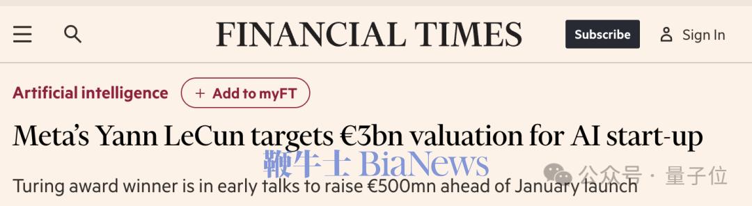 前脚LeCun本人在播客当中宣布了新公司名称,现在融资和估值目标就被《金融时报》曝光了。