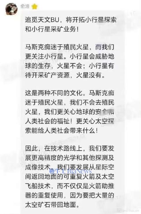 接下来,追觅一口气宣布进军新能源汽车、智能手机、机器人、无人机、商务飞机。9月24日,俞浩甚至在内部信中表示,要积极开拓小行星探索和采矿业务,打造“空天地一体”智慧探索体系。追觅方面透露,太空探索是精密制造、动态控制、AI算法等核心技术的自然出口,是公司技术积累的必然延伸。