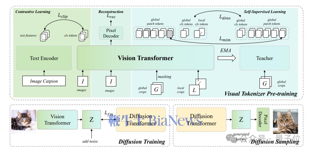 更关键的是,还带来了一款开箱即用、专为“下一代生成模型”打造的可扩展视觉分词器预训练框架——Visual Tokenizer Pre-training(以下简称VTP)。