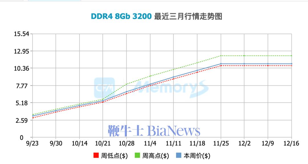 即便如此,实际的涨幅还是超越了大部分的预期。“就拿4代内存来说,8G-3200频率,海力士颗粒以及三星颗粒的,涨前价格平均在70每根,截止到目前12.17号平均价格在350每根,涨幅在280%左右。”小赖讲道。