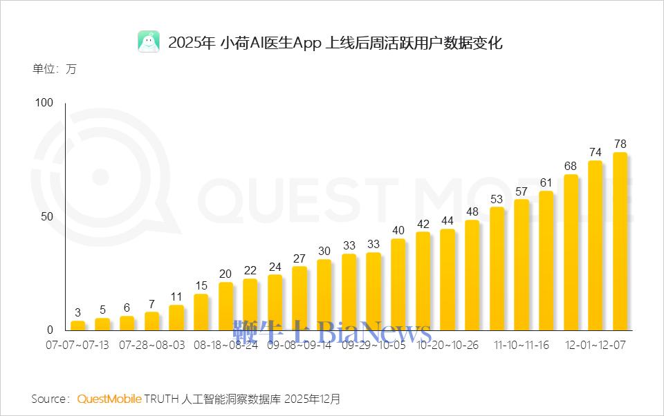 12月23日,QuestMobile数据显示,蚂蚁阿福App、灵光App周(12.08-12.14)活跃用户规模分别达1025.4万和295.2万,位列下半年新上线原生App第一、第二;此外,另一医疗领域垂直应用,抖音旗下小荷AI医生App也有不错表现。