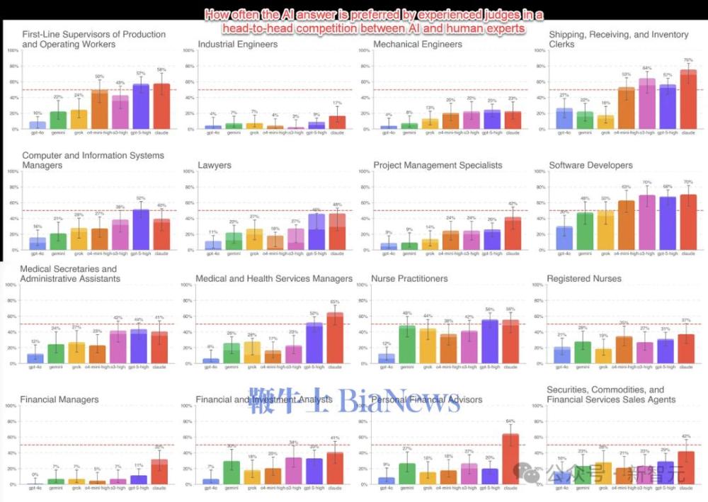 OpenAI发布了一个名叫GDPVAL的新基准测试。它不像以往的数学或常识测试,而是专门考察大模型在现实工作场景中能否创造经济价值。