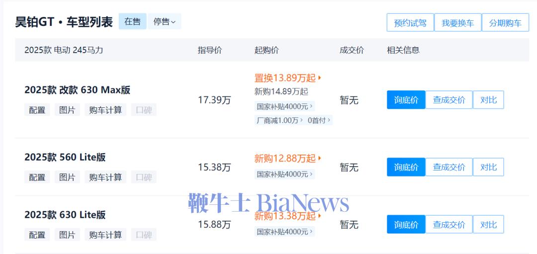 从具体车型来看,希望树立超高端品牌形象的百万超跑昊铂SSR,多个垂类网站数据显示,其今年有多个月份的月销量显示为0。今年10月30日刚刚上市的昊铂GT全新LITE版,不到两个月就有经销商给出了降价2.5万元的优惠,几乎打了八折。