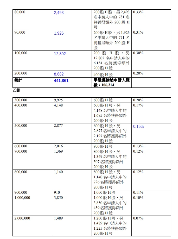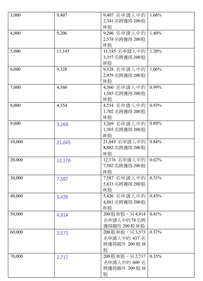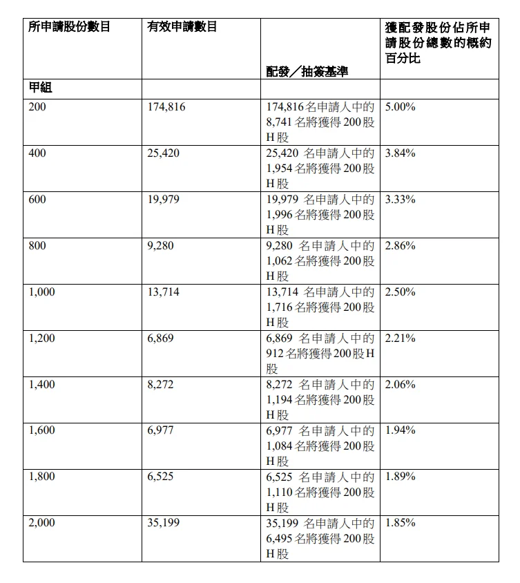 公开发售阶段壁仞科技 (06082.HK)获2347.53倍认购,公开发售的发售股份最终数目为4953.86万股股份,占发售股份总数的约17.39%。合共接获约471,116份有效申请,受理申请数目135,569份,申购一手获配发股份占所申请股份总数的概约百分比为5%。