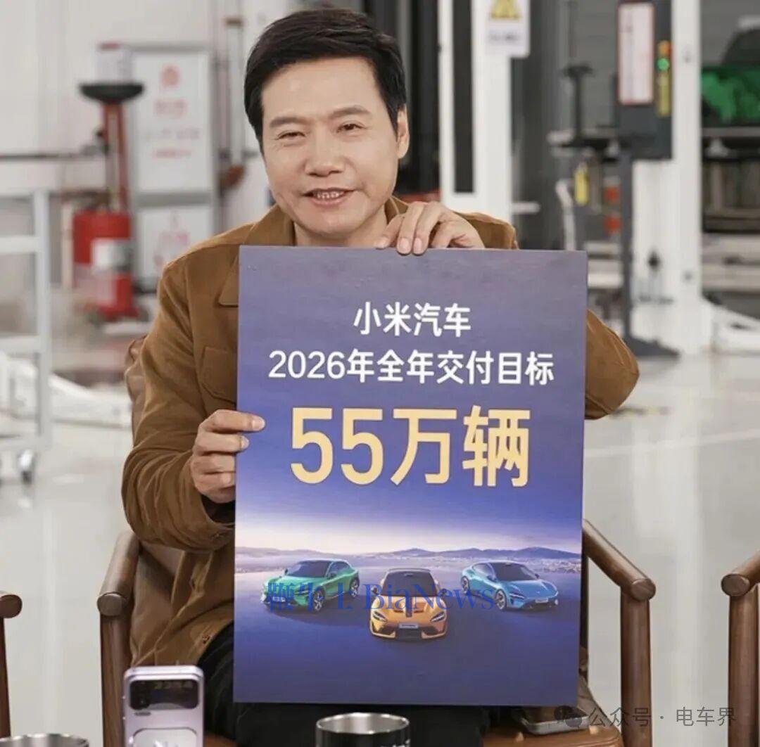 雷军还表示,今年小米汽车全年交付目标定为55万辆,去年为41万辆。(转载自电车界)