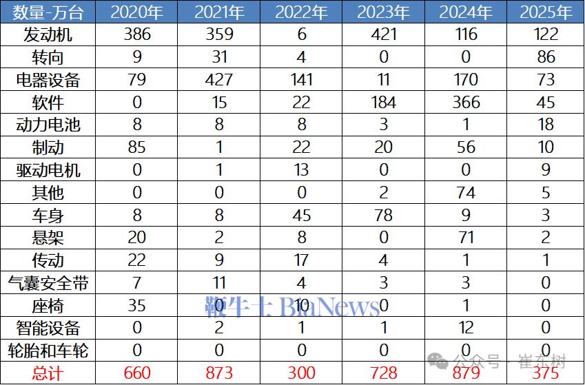 数据显示,2023年累计召回181批次728万台,2024年累计召回160批次879万台,2025年1-12月累计召回129批次375万台,累计召回数量同比下降57%。