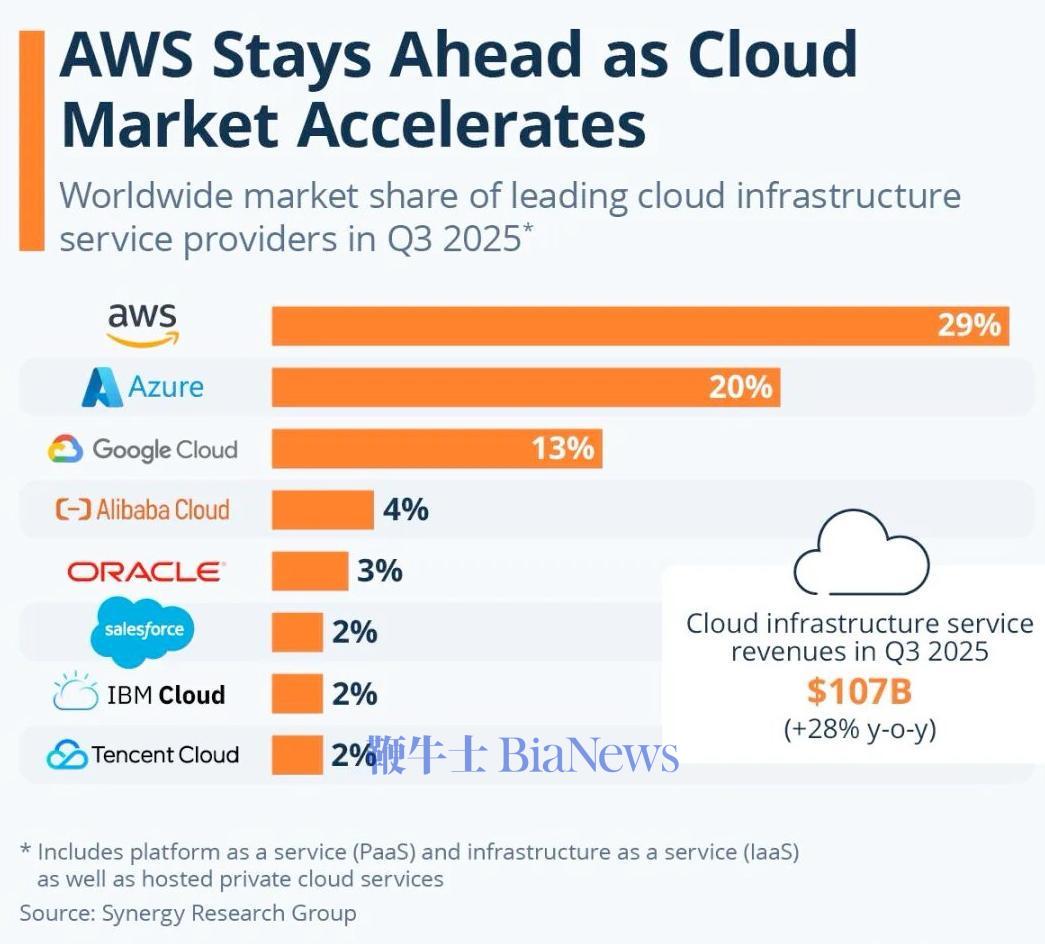 为了扭转颓势,亚马逊内部启动了代号为奥林匹斯的秘密武器项目,据称其参数规模将远超现有模型。然而时至今日,该模型仍笼罩在神秘的面纱之下。作为亚马逊利润奶牛和AI战略“躯干”的AWS云业务,同样面临腹地被侵蚀的严峻挑战。