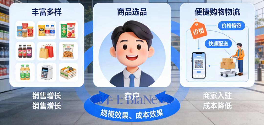 亚马逊的商业帝国是围绕类似“飞轮效应”的增长模型建立的:以客户体验为中心,提供更丰富的选品、更低的价格和更便捷的体验,从而吸引更多客户;更多的客户带来销售的增长,吸引更多商家入驻、形成规模效应,随后进一步降低成本,再将节省的成本返还给客户,形成不断加速旋转的增长闭环。