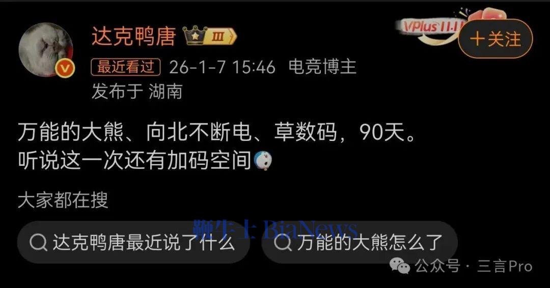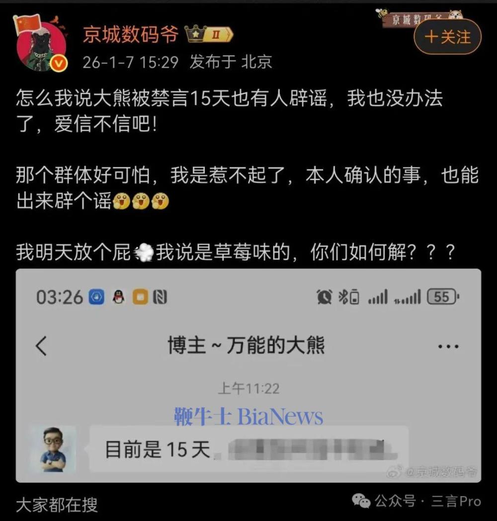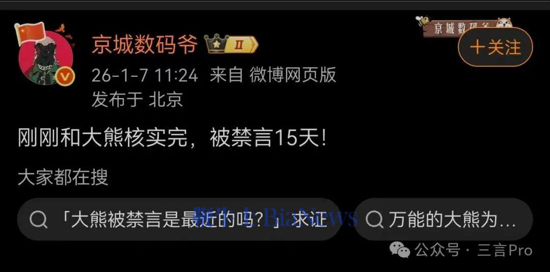 传「万能的大熊」、「向北不断电」等大V社媒被禁言