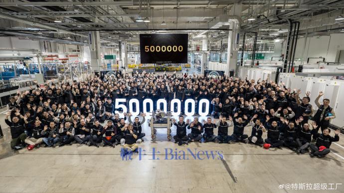1月8日,特斯拉宣布上海超级工厂第500万台电驱系统下线。