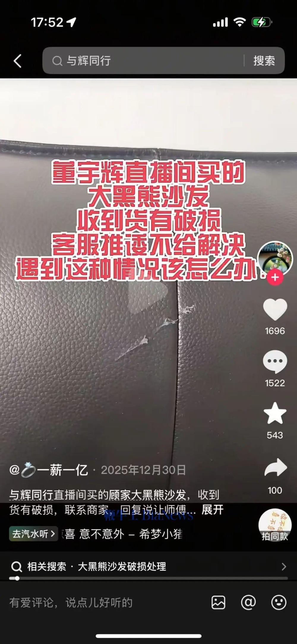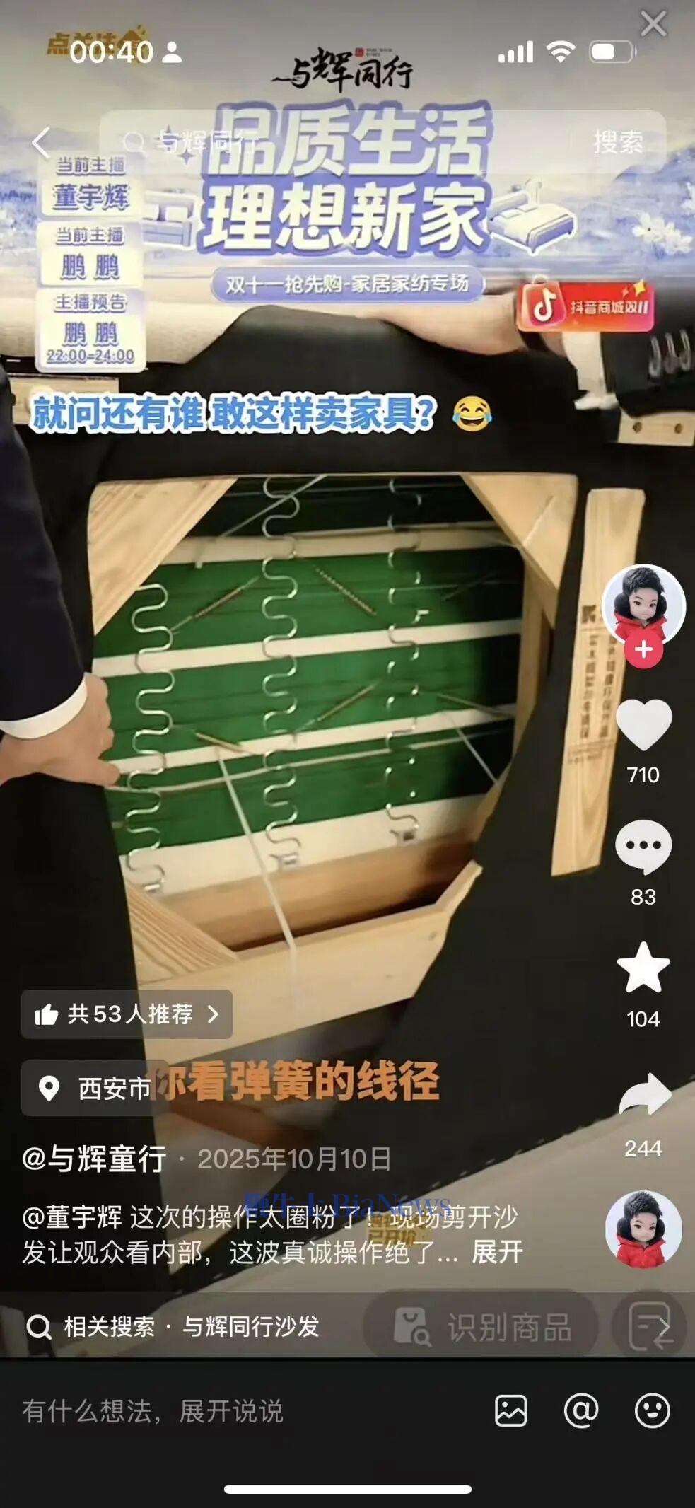 在收货评论中也显示出不同的体验。有人庆幸“明码标价,物超所值”;也有人在收货后发现质感与线下预期不符,愤而退货。董宇辉直播间给出了“无论是否为质量问题,退货均不需支付运费”的承诺,以极高的售后成本来消除大件商品的购买门槛。