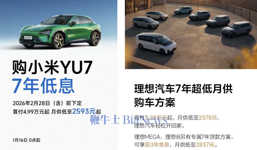 十天以后,雷军在直播的时候也跟进了类似的操作,表示在 3 月份之前下单小米 YU7 的用户,就可以享受到小米针对 YU7 的 7 年低息金融政策,最低可以用 4.99 万的首付和 2593 块钱的月供拿下新车。 紧接着米子,理想和小鹏也接连公布了自己的 7 年低息买车方案,首付也是一个比一个低。小鹏的最低首付,甚至直接干到了只要 1.8 万。 只要小几万的首付加上不算多的月供,就能拥有一台二十多万的新势力车型,这种诱惑谁能顶得住啊。 脖子哥看着自己扁扁的裤兜,史无前例地犯上了选择恐惧症。 当然,除了让大伙拥有一台车的门槛变低了以外,这些超长期的金融政策本身也大都在利息上有一定程度的优惠,本质上,其实是一种针对分期付款的降价促销。 接下来我将进行一些简单的计算,懒得看的兄弟可以直接跳到下面标灰的结论。 就拿特斯拉的方案来说,正常情况下如果想要用 7 年期的贷款购买一台后驱版的毛豆 Y ,咱们需要用 15% 的首付比例付将近 4 万块,然后贷款 22.4 万。 根据 4.69% 的折合年化利率计算,等到七年以后贷款到期,我们一共要付出的利息金额是接近 4 万块钱。计算公式大概长下面这样,其中 P 是贷款本金,r 是月利率,n 是还款期数。 而在新出的 7 年超低息方案里头,相似的首付比例下( 17% ),折合年化利率变成了 1.36%,对应到 7 年后需要支付的利息,则变成了 1 万块出头,相当于在利息上优惠了接近 3 万块钱。 其他几家也是类似,根据初始利率的不同,在贷款 25 万左右的超低首付情况下,低息方案都有着 3% 左右的年化利率下降。 所以结论就是,各家对应 7 年后的利息优惠,普遍也就是 3-4 万块钱左右。 对于一台二三十万的新车来说,这个幅度的利息优惠我觉得已经足够让很多手头不富裕、但对今后持续还款能力有信心的朋友们下单了。 读到这你是不是觉得,这七年低息多棒啊,直接下单呗! 但如果你还记得这篇文章的标题的话,那你应该知道我接下来要写啥了。 是的,虽然七年低息的政策看上去很大程度降低了咱们买车的门槛,但它的背后其实还是有一些隐藏的小坑,需要大家在买车之前注意。 要知道,咱们一般贷款买车的时候根据信用评级的不同,采用的形式要么是信用贷款( 五年免息方案用的大都是信用贷款 ),要么是抵押贷款,都是和各大银行合作搞的,比较常见的贷款形式( 当然还有小部分是消费贷 )。 通过这些方式买来的车,不管是所有权还是使用权都是车主自己的,说白了就是咱们自己的车。 区别在于,抵押贷款适用的是征信没有那么好的兄弟,需要在贷款的时候把车作为抵押物押给银行,签一份抵押协议。 这时候银行就获得了这台车的抵押权,在你还款违约的时候可以向法院申请实现自己的抵押权,把你的车子收回去。 可如果选择了七年低息的方案,不仅合作机构可能不是银行,买来的车甚至也可能不算自己的。 就比如这是目前提供七年低息方案的某品牌的金融计算器( 具体是谁咱就不说了,If you know you know ),里头就明确表明了它的七年低息产品根据地区不同,很大一部分是由自家的融资租赁公司提供的,并不是银行机构。 而在这个品牌的融资租赁小程序中,我们则能看到他们对车辆所有权的具体描述: 根据您与我司签订的《 车融资租赁合同、汽车抵押合同 》,租赁期间,车辆所有权属于⬛️⬛️融租,您仅拥有车辆使用权,且需每月支付租金给⬛️⬛️融租,直至合同结清。 也就是说,人们以为自己是用了比较低的利息在这家车企贷款买了车,但其实只是进行了一个超长期的租赁,车辆的所有权还是归车企,车主只是享受了使用权。为了防止你违约,自然也要跟车企签一个抵押协议。 那这会带来怎样的后果呢?他们在后头也提到了: 如您提车后未及时办理抵押,将构成合同违约,我司有权采取包括但不限于要求您一次结清合同项下所有未还款项、收回租赁车辆进行处置、上门催收、要求报送曝光失信信息、诉讼等多种救济措施,追究您应承担的法律责任。 就算是车主还完超长期的贷款了,车子可以解除抵押、所有权还给车主了,车主都得再交 120 块钱来解除抵押。 虽说不算啥,但总感觉心里有点那啥是吧。 而关于车子所有权不归车主这件事,在另一家国际头部新能源车企干了多年一线销售的 B 哥跟脖子哥说,他们的七年低息政策针对征信不太好的客户,也会提供和租赁公司合作的按揭贷款方案。 这类公司的放款审核大都比较宽松,按他的话说 “ 老赖、黑户都没问题,只要不是吸过毒基本都能做 ”,但在日常用车的时候也会有非常多的限制。 比如在提车的时候,车上就会安装租赁公司的 GPS 装置,日常行程几乎没有秘密可言。 此外,因为提车的时候车子是开的租赁公司的发票,已经被经过了一手,即使车主们还完了贷款,顺利进行了解抵押和过户获得了车辆的所有权,那车主本质上获得的也是一台二手车。 再加上如果碰上合作的租赁金融公司倒闭的情况,车辆的产权定义会变得非常复杂,需要等法院将该公司的破产结算全部结束以后才有可能理清。 所以 B 哥在接受品牌金融部门培训的时候就被告知除非情况非常特殊,不然不要给客户推荐融资租赁的方案。 也是因此,在 B 哥多年的职业生涯里,他也就只经手过一个采用类似方案的客户。 脖子哥也翻了一下目前提供七年低息方案的几个车企的金融页面,几乎没有例外,他们都在小字部分提到了