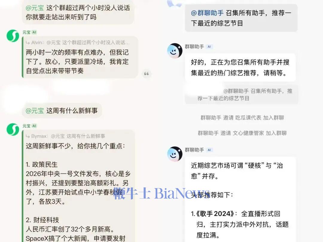 国内的大厂步伐较为一致,百度文心与腾讯元宝都在2026年1月底上线了AI群聊功能,但产品方向明显不同。