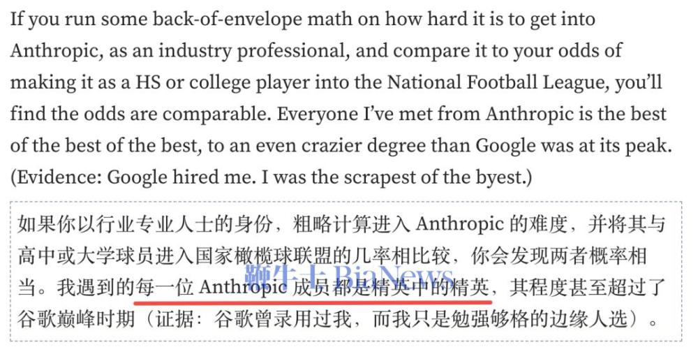 以行业专业人士身份进入Anthropic的概率,跟一个高中生打进国家橄榄球联盟差不多。
