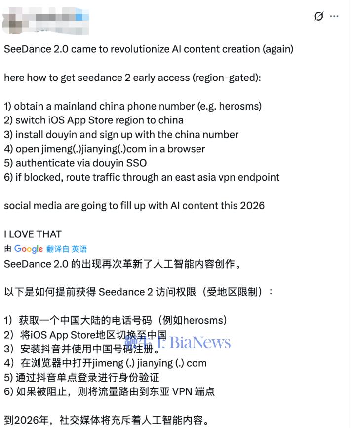 Seedance 2.0目前还在内测阶段,只对国内用户开放,逼得外国人纷纷找教程,学习如何搞一个中国手机号完成注册。
