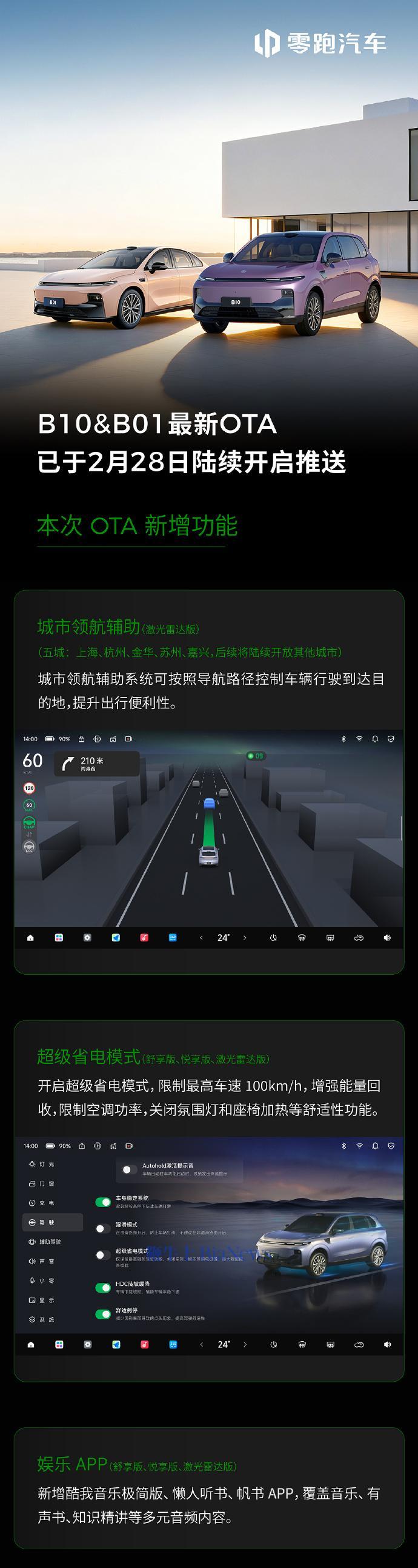2月28日,零跑汽车今日宣布OTA已陆续开启推送,零跑B10、B01、2026款C10、C16四款车型迎来OTA升级。